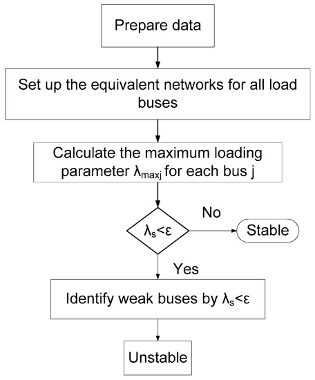 - Based on this derived index given in Equation (36), the following strategy is constructed to measure the maximal loading parameter for each load bus. The ranking of weak buses is based on these data. In the following lines we have summarized the processing of proposed technique where Figure 2 represents the relevant flow-diagram;