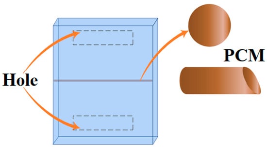 The different parts of the Tr-W, including their thickness and dimensions, are presented in Table 1. There is an air passage hole at the top and bottom of the Tr-W, where its height is 20 cm (Figure 2). The width of the hole has three different sizes of 17.5, 35, and 70 cm (Figure 3). Heat flux is applied to the back of the wall due to sunlight. Due to the natural convection, the air inside the wall moves. A tube with 1 inch in diameter filled with PCM is placed in the middle of the Tr-W horizontally. The wall of the tube is made of aluminum. Table 2 presents the properties of the PCM.