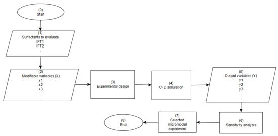 Céspedes, S.; Molina, A.; Lerner, B.; Pérez, M.S.; Franco, C.A.; Cortés, F.B. A Selection Flowchart for Micromodel Experiments Based on Computational Fluid Dynamic Simulations of Surfactant Flooding in Enhanced Oil Recovery. Processes 2021, 9, 1887. https://doi.org/10.3390/pr9111887