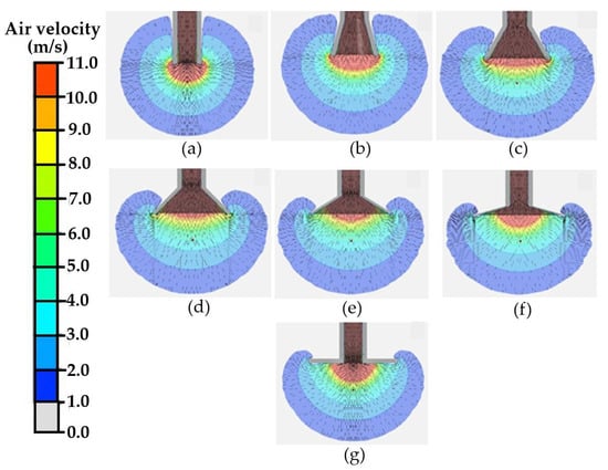 - Garrison, R.P. Nozzle Performance and Design for High Velocity/Low Volume Exhaust Ventilation; ProQuest Information & Learning: Ann Arbor, MI, USA, 1977. [Google Scholar]