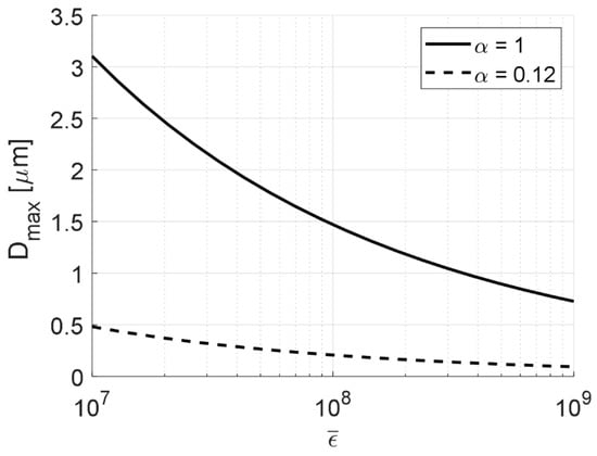 where α is a fractal dimension. The fractal dimension is a stochastic property that can assume different values. Each instantaneous realization of the flow (i.e., each point in time), is characterized by a specific value of α. We can see α as a label put on each turbulent eddy indicating its intensity. If we knew the value of α at a given point in space and time, we could calculate the maximum drop diameter surviving these conditions, by equating the disruptive stress in Equation (19) with the stabilization in Equation (2) (and with an added viscous stabilizing term if necessary). This results in (if neglecting viscous stabilization) []