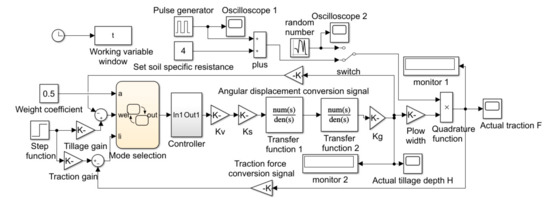 To enhance the target of tractor field trials and save research and development time and costs, in this paper, the basic theoretical model of the plowing operation system shown in Figure 9 is established based on Matlab/Simulink and compares and analyzes the response of different control algorithms.
