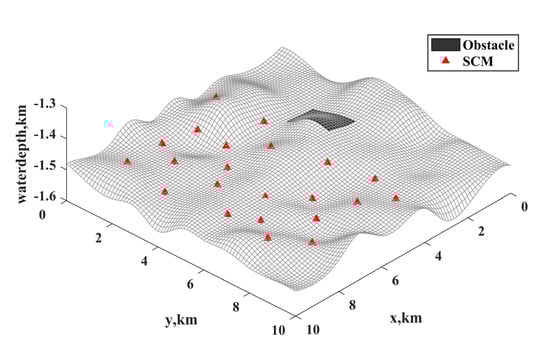 where is the serial number of the SCM, which is the row index (or column index) in matrix . is the position of the ith SDU, where . The position of the TDP is determined by . When the particles are updated, the row in the is successively selected and sorted in ascending order, and the column indexes of the top elements should be recorded. This means that the connection relationship between the ith SDU and SCMs is determined. Then, the top elements are set to infinity, denoted by , so that it will not be sorted in the next time. When all elements in matrix are , the connection relationships of all SDUs and SCMs are obtained. Then, the matrix should be restored to its original state, so that the next particle can be operated as above.
