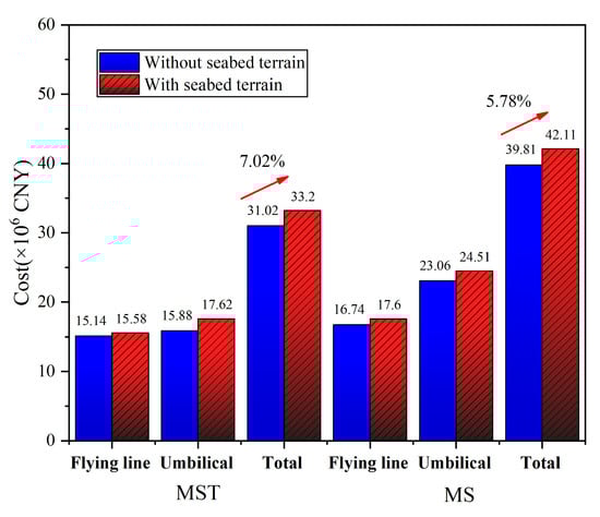 Comparison of the total pipeline cost with and without seabed terrain.
