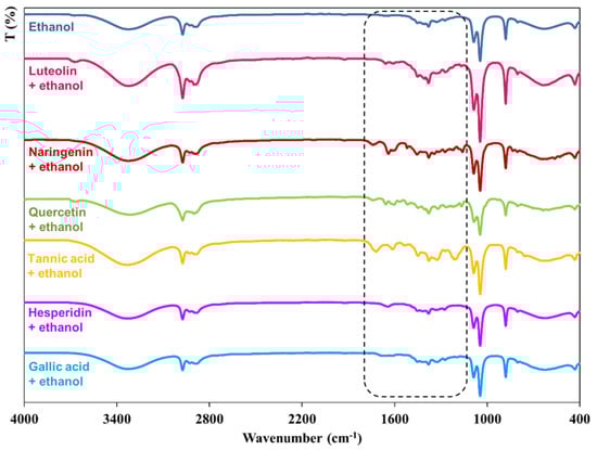 - Baranović, G.; Šegota, S. Infrared spectroscopy of flavones and flavonols. Reexamination of the hydroxyl and carbonyl vibrations in relation to the interactions of flavonoids with membrane lipids. Spectrochim. Acta Part A Mol. Biomol. Spectrosc. 2018, 192, 473–486. [Google Scholar] [CrossRef]