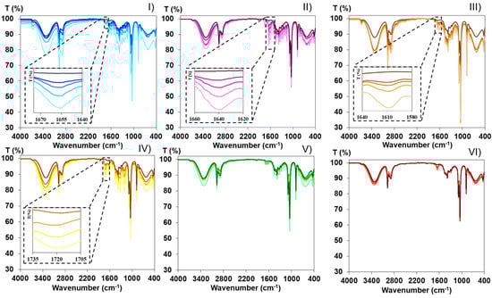 | IR Vibration Peaks at Specific Wavenumbers (cm−1) | ||||||