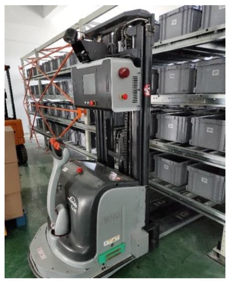 Forklift AGV equipment is needed to complete the access operation of goods in the logistics distribution center, as shown in Figure 1. Research on forklift AGV equipment has made great progress over the years. However, the current application of forklift AGV equipment is still limited by the cost and the computing power. Forklift AGV equipment needs to be aware of the environment in almost all cases. The visual system of forklift AGV equipment can be constructed by a deep learning method to identify the shelves, passages, and other environmental information in the working environment. In the aspect of working-environment map construction and vehicle location, forklift AGV equipment obtains environmental information through the camera, lidar, and other environmental sensing equipment, analyzes environmental information data through deep learning and image processing, identifies passable areas and obstacles in the environment, and uses a path planning algorithm to plan the path of forklift AGV equipment, so as to complete the task of forklift AGV equipment. The environmental information obtained by camera or lidar has rich environmental information, which can deeply restore the real environment in the construction of the environmental map. Research on the environmental map construction of forklift AGV equipment has received more and more attention, but each method will have different performances in different environments.