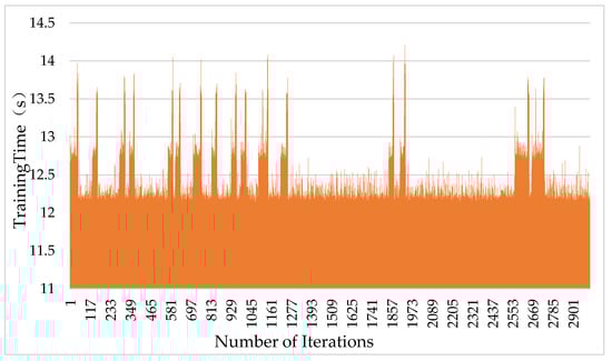 As shown in Figure 9, the average training time per round of the network model with depthwise separable convolution was 12.41 s, and the total training time was 10.34 h. In the traditional convolution operation network model, the average training time per round is 14.83 s, and the total training time is 12.36 h. It can be seen that the depthwise separable convolution has an obvious effect on reducing the training time of the model.