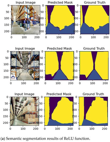 As shown in Figure 12, 3000 epochs were trained with the network model of the H-Swish activation function and the ReLU activation function, and the segmentation results on the test set image are shown. In the image semantic segmentation, the segmentation effect of using the H-Swish activation function is better, and the segmentation of the target analogy is smoother and more accurate. From the above experimental results, we can see that the segmentation effect of using the H-Swish activation function is better, indicating that using this activation function can improve the performance of the convolution neural network.