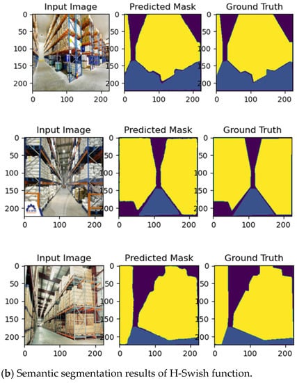 Semantic segmentation results of ReLU and H-Swish activation functions.