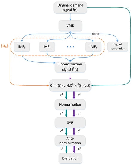 Step 3. Eliminate the signal remainder. The remaining are superimposed to obtain the reconstructed signal . This step realizes the noise reduction of the original demand signal.
