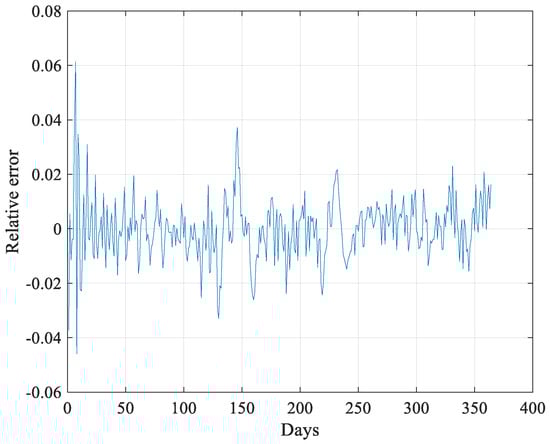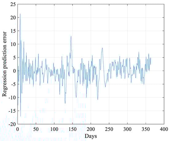 Figure 12 that the prediction error of the original demand signal is relatively stable on the whole. Except that the errors of individual sample points on days 131, 145, 230 and 310 are large, the average error of regression prediction is about 10 tons and the relative error is about 2%. As can be seen from