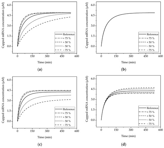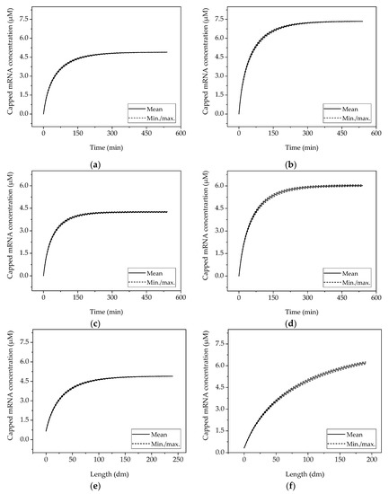 - Arnold, S.; Siemann, M.; Scharnweber, K.; Werner, M.; Baumann, S.; Reuss, M. Kinetic modeling and simulation of in vitro transcription by phage T7 RNA polymerase. Biotechnol. Bioeng. 2001, 72, 548–561. [Google Scholar] [CrossRef]