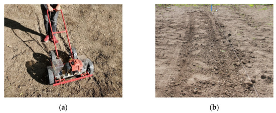 Vibrations will be transmitted to the seeder through the frame structure, which seriously affects the uniformity and stability of seeding. In order to further explore the effect of the optimized frame on seeding, a seeding performance comparison test, before and after frame optimization, was carried out. The experiment was carried out in the experimental base of the Engineering College of Northeast Agricultural University in June 2021, as shown in Figure 11.