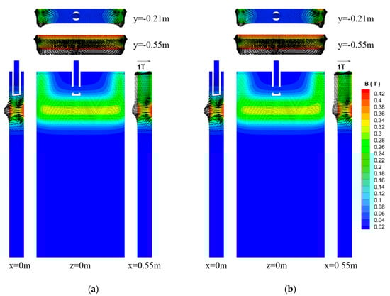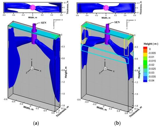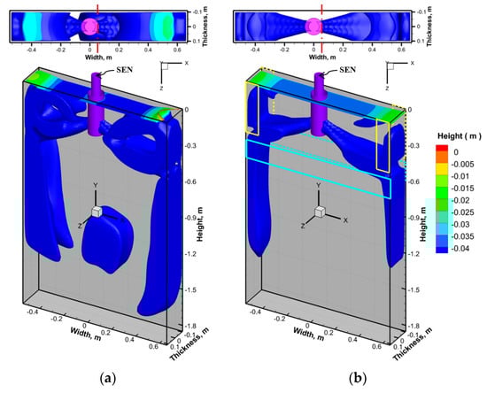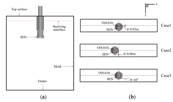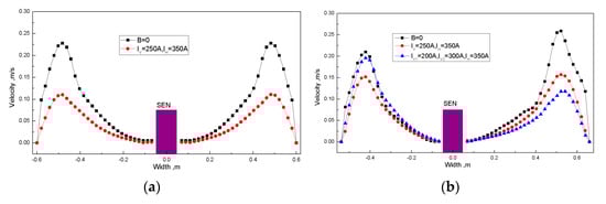 3.2. Effect of SEN Position and Magnetic Field on Molten Steel Flow