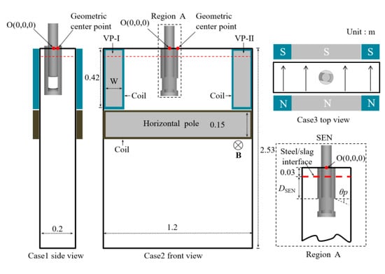 - Li, Z.; Zhang, L.T.; Ma, D.Z.; Wang, E.G. Numerical simulation on flow characteristic of molten steel in the mold with freestanding adjustable combination electromagnetic brake. Metall. Mater. Trans. B 2020, 51, 2609–2627. [Google Scholar] [CrossRef]
