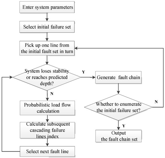 The flowchart of cascading failure is shown in Figure 2. From this, the fault chain set can be obtained.
