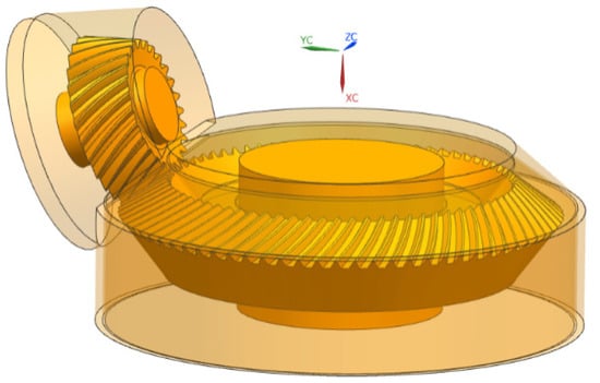 The high-speed gearbox of the aeroengine has a complicated structure. To avoid the interference of other parts in the gearbox, the study of the windage loss of SBGP and the design of the windshield are performed in the closed gearbox. To simplify the complexity of the numerical simulation of windage loss and improve the efficiency of the simulation, the model needs to be simplified, ignoring bearings, fixings, etc. In UG (Unigraphics), a top-down method is employed for parametric modeling, and the simplified three-dimensional model of the gearbox is shown in Figure 2.