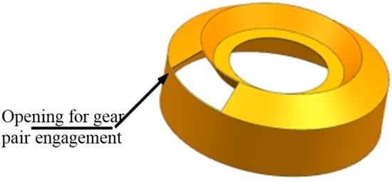 The structure design of the windshield is shown in Figure 3. The windshield is installed between the driven gear and the gearbox, covering the driven gear completely. The opening area of the windshield is the engagement area of the gear pair.