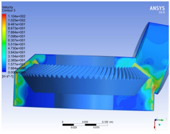 After the driven gear is equipped with a windshield, the air velocity in the fluid domain between the windshield and the gearbox is significantly reduced. As the clearance between the windshield and the gear continues to shrink, the peak velocity of the air in the flow field between the windshield and the gear increases, but the flow field area with a higher flow rate becomes smaller.