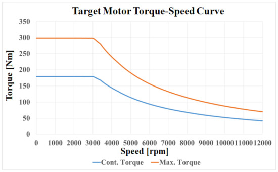 The target performance of the traction motor, derived from the driving performance simulation, is shown in Figure 9.