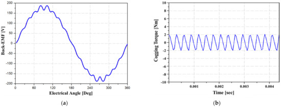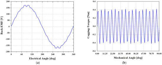 Optimal design result in no-load condition: (a) back-EMF waveform; (b) cogging torque waveform.