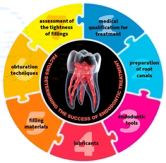 Therefore, the aim of this paper is a comprehensive presentation of the design conditions of engineering endodontic filling materials, which are one of the typical dedicated engineering materials, and multi-faceted analysis of the conditions of their use and the quality and durability of the performed endodontic fillings (Figure 3).
