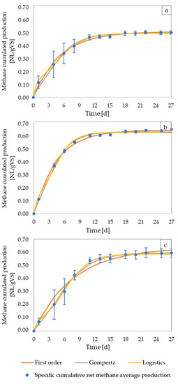 | B0 (NmL∙gVS−1) | k (d−1) | R2 | P (NmL∙gVS−1) | λ (d) | Rm (NmL∙gVS−1∙d−1) | R2 | B0 (NmL∙gVS−1) | k (d−1) | B | R2 | |