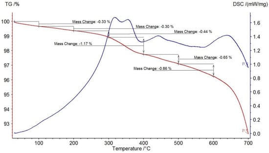 Thermal analysis. Organic matter content in rock sample and thermal effects analysis were performed using a synchronous thermal analysis instrument STA 443 F3 Jupiter (Netzsch, Gebrüder-Netzsch-Straße, Selb, Germany) in air as oxidizing environment at a heating rate of 10 °C/min, and a temperature range of 20 to 1000 °C. TG-DTA curves were processed by means of Netzsch ProteusThermalAnalysis standard software.