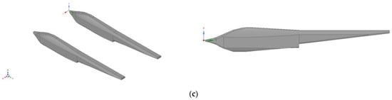Figure 1. designs (a) and (b) will act as controls of this study, where the results of each design will be compared with the test design (c), which is a floating pontoon of results—an adaptation of the body characteristics of sailfish. To achieve the research objectives, namely, to find out the effect of the hydrodynamic adaptation of the sailfish body to resistance on the initial design of the pontoon N219 seaplane buoyancy, three designs researched resistance value, drag coefficient. Furthermore, flow visualization of its hydrodynamic characteristics.