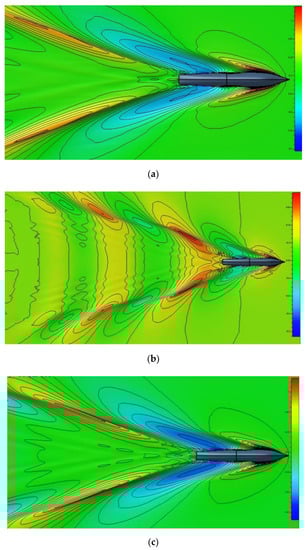 Different deadrise angle configuration with Froude number 0.6; (a) 20°; (b) 25°; (c) 35°.