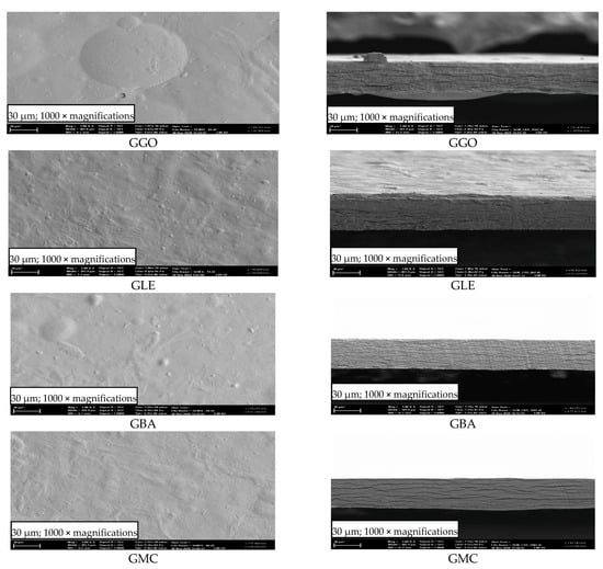 Scanning electron micrographs of the surface and cross-section of the gac pulp-based films.