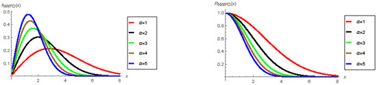 The pdf and reliability function of the NWPD with .