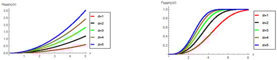The hazard and distribution functions of the NWPD with .