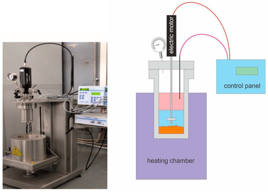 Figure 2. Picture and sketch of the batch reactor used to perform the experiments (PARR, mod. Autoclave Buchi Limbo-li®).