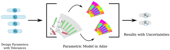 The tolerance analysis was carried out by the digital-twin-distiller (digital-twin-distiller is available for download from: http://www.github.com/montana-knowledge-management/digital-twin-distiller, accessed: 17 October 2021). a novel robust design optimization platform, which has many features supporting high-performance tolerance analysis with different FEM-solvers [26]. Due to the Platform class, it is possible to switch between the integrated FEM-solvers: Agros2D and FEMM [25,32,33,34].