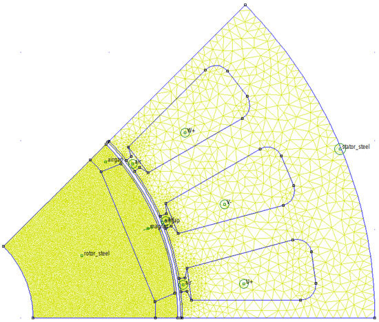 An example configuration for the mesh selectivity analysis. The mesh size is set to mm on the rotor_steel, airgap, magnet regions.