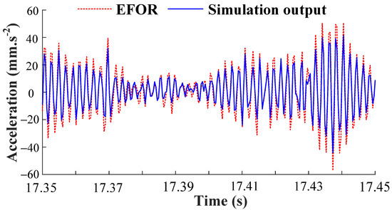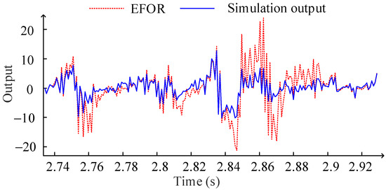 It should be mentioned that the polynomial functions (21) are different with (19) due to the only parts of the data sets are used for modeling. This also shows that the polynomial function obtained by fitting the coefficients of the NARX model and physical parameter values cannot reflect the system characteristics accurately, although the model terms in the CMS are all correct. The EFOR output and simulation result of φ = 10 are compared as shown in Figure 2.