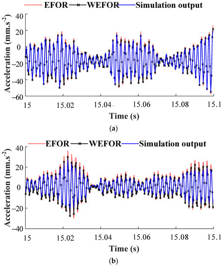 Comparison among the WEFOR output, the EFOR output, and the simulation output. (a) MPO validation (δ = 7 Nm) and (b) MPO validation (δ = 8 Nm).