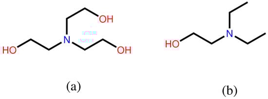 Molecular structure of: (a) triethanolamine (TEA) and (b) 2-(diethylamino)ethanol (DEEA).