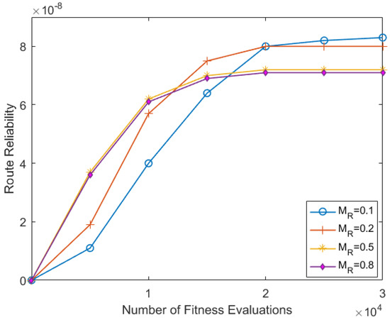 6.2.1. Route Reliability Results Based on the Probability of Mating Rate Parameter