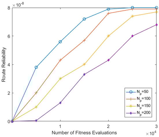 6.2.2. Route Reliability Results Based on Population Size POP Parameter