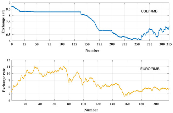 The financial market is a core component of economic operation. A financial time series is a time series of economic or financial indicators over time in the financial market. The analysis of financial time series is one of the crucial components in the analysis of the economic activities of an entire country. An exchange rate, a typical financial time series, is a ratio of a country’s currency to other countries’ currencies, which is one of the most commonly used financial instruments worldwide [1]. With the acceleration of economic globalization and financial integration, the issue of exchange rate has become a focus of concern for the international financial community. The process of changes in exchange rates is complicated and is closely related to a country’s economic level, price level, inflation rate, interest rate, and government intervention. A country’s exchange rate not only has a huge impact on the international economy and financial markets but also has an important impact on socioeconomic parameters and everyday life [2]. Therefore, in order to maintain sustained and stable economic growth, the correct prediction of exchange rates is imperative, as this can not only help the state and foreign trade enterprises strengthen management and avoid foreign exchange risks, but it is also a powerful supplement to the foreign exchange market theory [3].