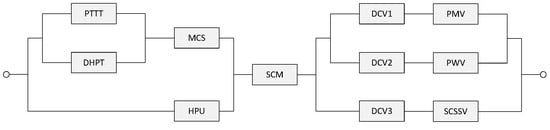 As the core part of subsea production system, subsea control system has important functions of monitoring production status and manipulating control equipment [,,]. The mainstream type of subsea control system is multiplexed electro-hydraulic control system, which has short response time, high redundancy and low cost of umbilical cable, and can give consideration to both reliability and economy [,,]. An indispensable part of the multiplexed electro-hydraulic control system is subsea emergency shutdown (ESD) system, which can prevent the occurrence of major production accidents to a great extent, ensure the stable production of oil and gas fields, and protect the personal safety of field personnel, production facilities, and marine environment []. Therefore, the reliability level of subsea ESD system determines the safe operation of offshore oil and gas exploitation, and its reliability evaluation is of far-reaching significance.