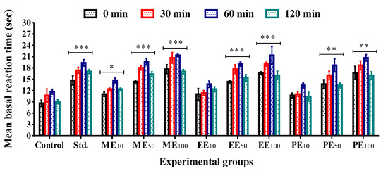 The study was conducted according to the guidelines of the Institutional Animals Ethics Committee (IAEC) and study protocols (reference no. USTC/USTMEBBC/2018/12/22) were approved by the University of Science and Technology Medical Ethics, Biosafety and Biosecurity Committee (USTMEBBC) of the Basic Medical and Pharmaceutical Sciences Faculty, USTC, Bangladesh.