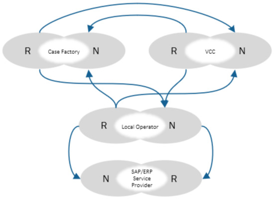 The most potential that new business opportunity recognized for local 5G operators in the context of future factories is the “Platform Business”, which emphasizes permissions that are related to external data, data exchange, and data quality. In this type of business (Figure 5), the local operator can serve as a platform to communicate and exchange data between VCCs in a multi-sided marketplace, serving several types of stakeholders with different offerings. One value co-creator (VCC) needs something in this scenario, and another VCC supplies something. The local operator performs a key role in bringing the two sides together and assisting with harmonizing and managing this process. Findings show that a substantial number of needs and resources are characterized by this type of business opportunity for local operators. This characterization hearkens back to the statement [27] that businesses are increasingly embracing this type of value configuration in the digital age. It is the most appropriate value configuration for local operators and it is the basic underlying business model of the local operator in the future factory context.