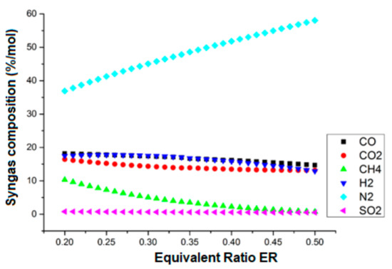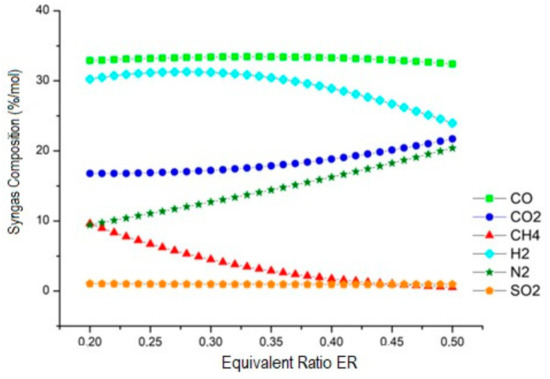 | ER | SB | %CO (E) | %CO (M) | %H2 (E) | %H2 (M) | %CO2 (E) | %CO2 (M) | %CH4 (E) | %CH4 (M) | RMS |