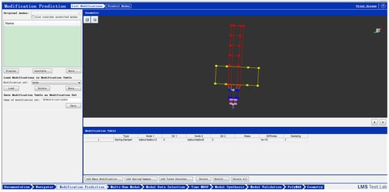 In order to more accurately represent the dynamic characteristics of the whole machine tool, the dynamic stiffness-sensitivity algorithm is used to transform the dynamic characteristics of the whole machine tool into the key modes of sensitive components, so as to realize the characterization of the dynamic characteristics of the whole machine tool. In Section 3.3, through the EMA and dynamic stiffness-sensitivity analysis of the actual machine tool, it is determined that the spindle head is the most sensitive part of the whole machine. In order to further verify the accuracy of the identification results of the algorithm, this section details the modification of the physical parameters of the original machine tool with the help of the modal modification prediction module of LMS, predicts the dynamic characteristics of the modified machine tool, and compares and analyzes the FRF curves before and after modification, so as to confirm the reliability of improving the stiffness of sensitive parts and the overall dynamic stiffness of the machine tool.