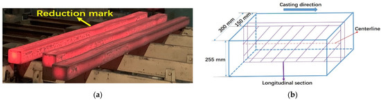 APA StyleChen, X., Deng, W., & Niu, S. (2021). Industrial Application of Mechanical Reduction on Continuous Casting of Bearing Steel Bloom. Processes, 9(12), 2280. https://doi.org/10.3390/pr9122280