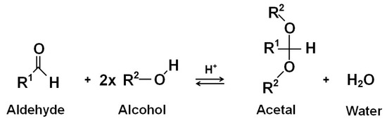 - Silva, V.M.T.M.; Rodrigues, A.E. Novel process for diethylacetal synthesis. AIChE J. 2005, 51, 2752–2768. [Google Scholar] [CrossRef]